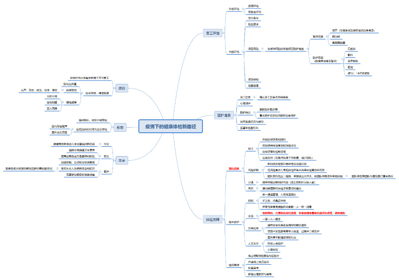 今天,中華醫(yī)學會健康管理分會組織召開<疫情形勢下的體檢路徑>線上學術沙龍,各位一線專家針對如何科學防控、精準施策給出了系統(tǒng)且實用的建議。調(diào)鼎市場部整理本次會議中各位專家的分享內(nèi)容,制作了一份綜合思維導圖供大家參考。